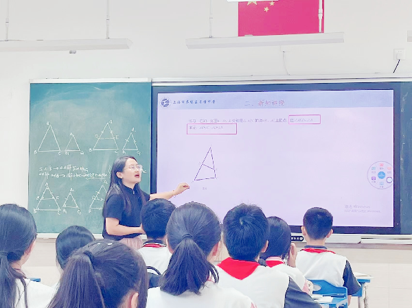 活动伊始,蔡姝萍以《24.4(2)相似三角形的判定》为题,为大家呈现了一堂精彩的校内公开课。课堂上,她围绕相似三角形判定的核心知识点,通过精心设计的问题链,引导学生逐步深入探究。她借助清晰的课件演示、生动的案例分析,将抽象的数学知识具象化,有效激发了学生的学习兴趣。在互动环节,蔡姝萍注重引导学生自主思考、小组讨论,让学生在合作交流中梳理解题思路,充分展现了以学生为主体的教学理念,为后续的研讨环节提供了优质的课堂样本。