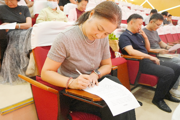 随后,活动进入师德建设核心环节。主持人详细解读《肖塘中学教师师德承诺书》核心条款,强调新时代师德师风建设的关键要求。全体教师神情庄重,依次在承诺书上郑重签名,以笔墨践行育人初心,随后将承诺书统一上交存档,彰显了该校教师恪守职业规范的坚定决心。