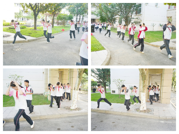 随着防空警报信号的响起,全体师生迅速响应,严格遵循演练方案要求,双手抱头保护头部,按照演练既定路线,快速、有序地从各班级撤离至操场指定安全区域,整个撤离过程规范高效。