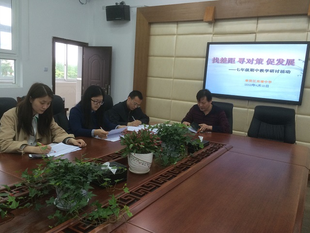 七年级的研讨主题是《找差距 寻对策 促发展》。教导处潘世清主任介绍了七年级期中调研情况,肯定了老师们的教学工作及学生取得的进步,并提出了要求:均衡发展、稳步提升。随后几位老师分别从班级、学科、试卷、学生等方面进行了分析,寻找学生间、班级间、六校间存在的的差距并提出了改进措施和今后努力的方向。