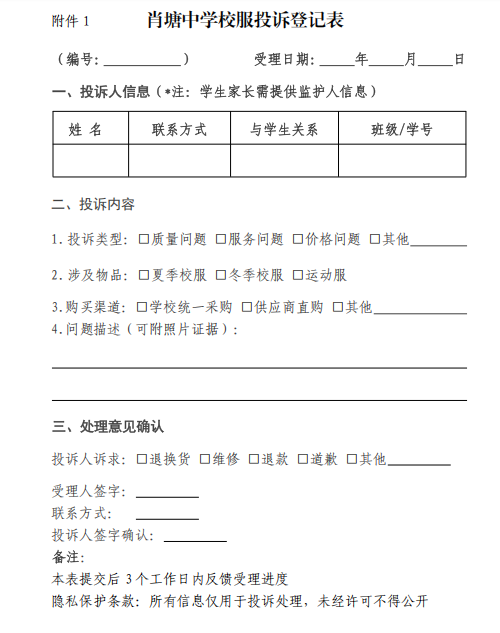 四、校服投诉受理机制