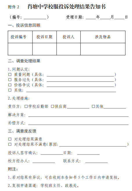 5.附件 1《校服投诉登记表》、附件 2《处理结果告知书》表